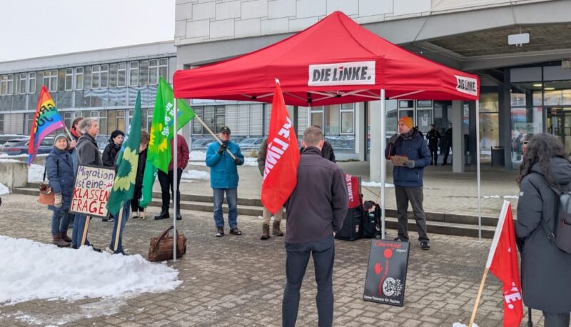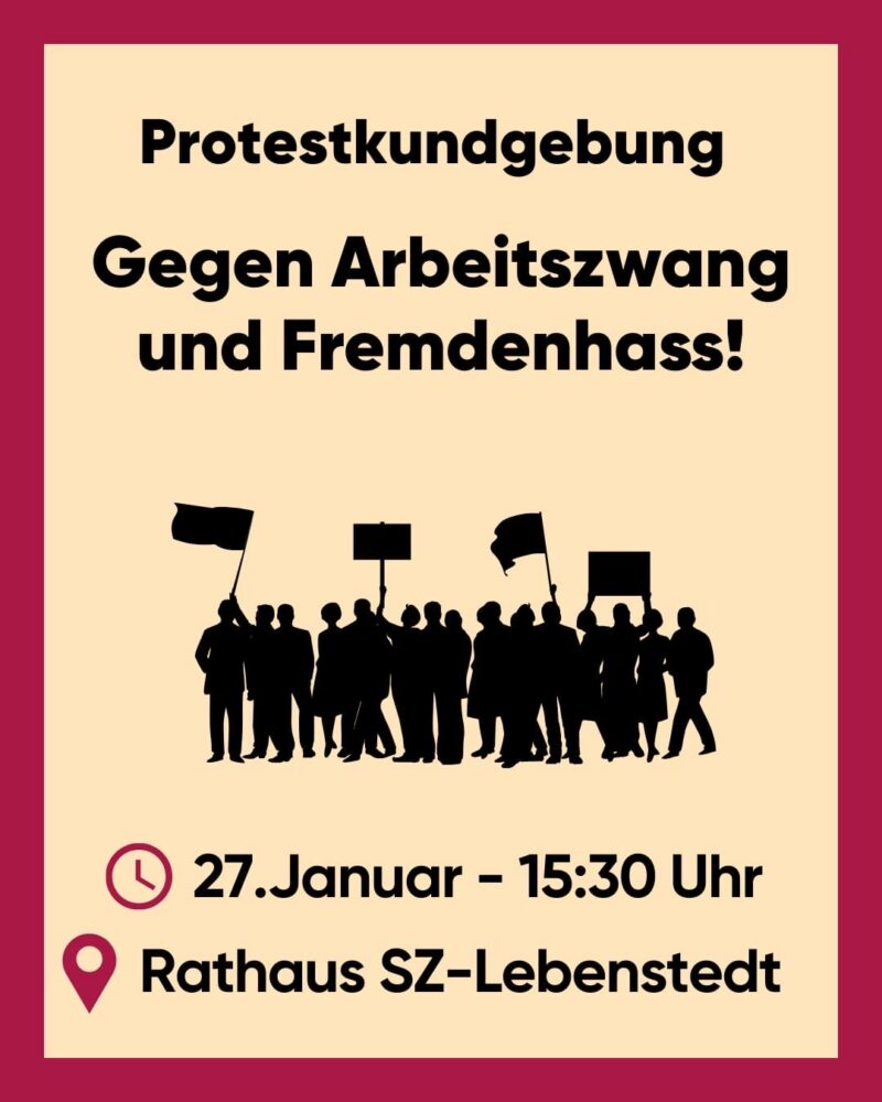 Vor dem Rathaus in Salzgitter Lebenstedt fand am 27. Januar eine Demonstration gegen den Beschluss des Rates statt, eine Arbeitspflicht für Flüchtlinge zu prüfen und einzuführen. Neben Vertreter*innen von den Linken, Die PARTEI, IG Metall und der Gruppe „Migrantifa“ nahmen unser Kreisverband und die GRÜNE JUGEND an der Demo teil. Einig waren sich alle Redner*innen, dass eine Arbeitspflicht politisch falsch und gesellschaftlich problematisch ist. Sie steht im Widerspruch zu den Prinzipien von Menschenwürde, Fairness und gelingender Integration. Mit dem Beschluss betreiben SPD und CDU Politik im AfD-Stil und stärken die AfD. Arbeitspflicht ist Zwangsarbeit, denn die Androhung des Entzugs sämlicher unterstützender Leistungen zwingt die Flüchtlinge in eine entwürdigend entlohnte Arbeit. So gelingt Integration nicht. Das ist keine Wertschätzung, wie von SPD und CDU behauptet.