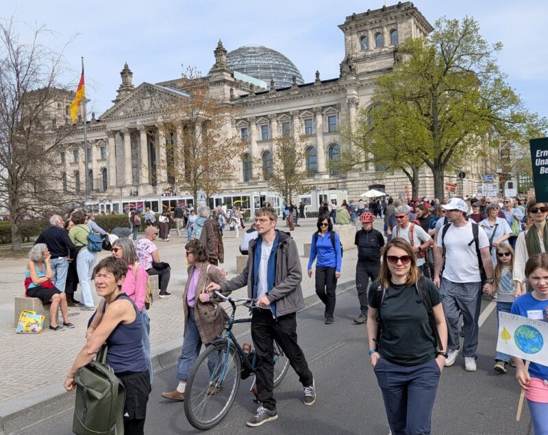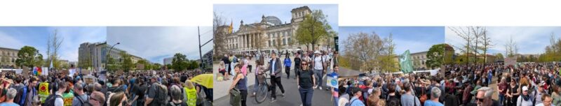 In Deutschland waren über 80.000 Bürger*innen auf den Demonstrationen, in Berlin waren 24.000 auf der Demo. Der Demonstrationszug ging vom Wirtschaftsministerium über den Bundestag zum Bundeskanzleramt und zurück zum Wirtschaftsministerium. Eine sehr bunte Mischung: Kinder, Jugendliche, Familien, Mittelalter, Alte, von Punk bis Anzug mit Schlips und Kragen.